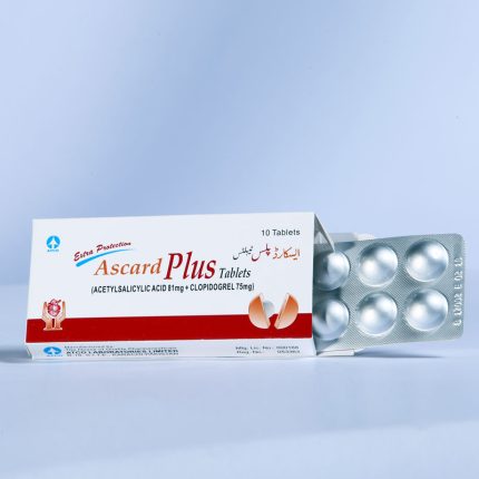 Ascard Plus combines the antiplatelet effects of acetylsalicylic acid (aspirin) and clopidogrel to reduce the risk of heart attack and stroke in individuals with cardiovascular conditions.