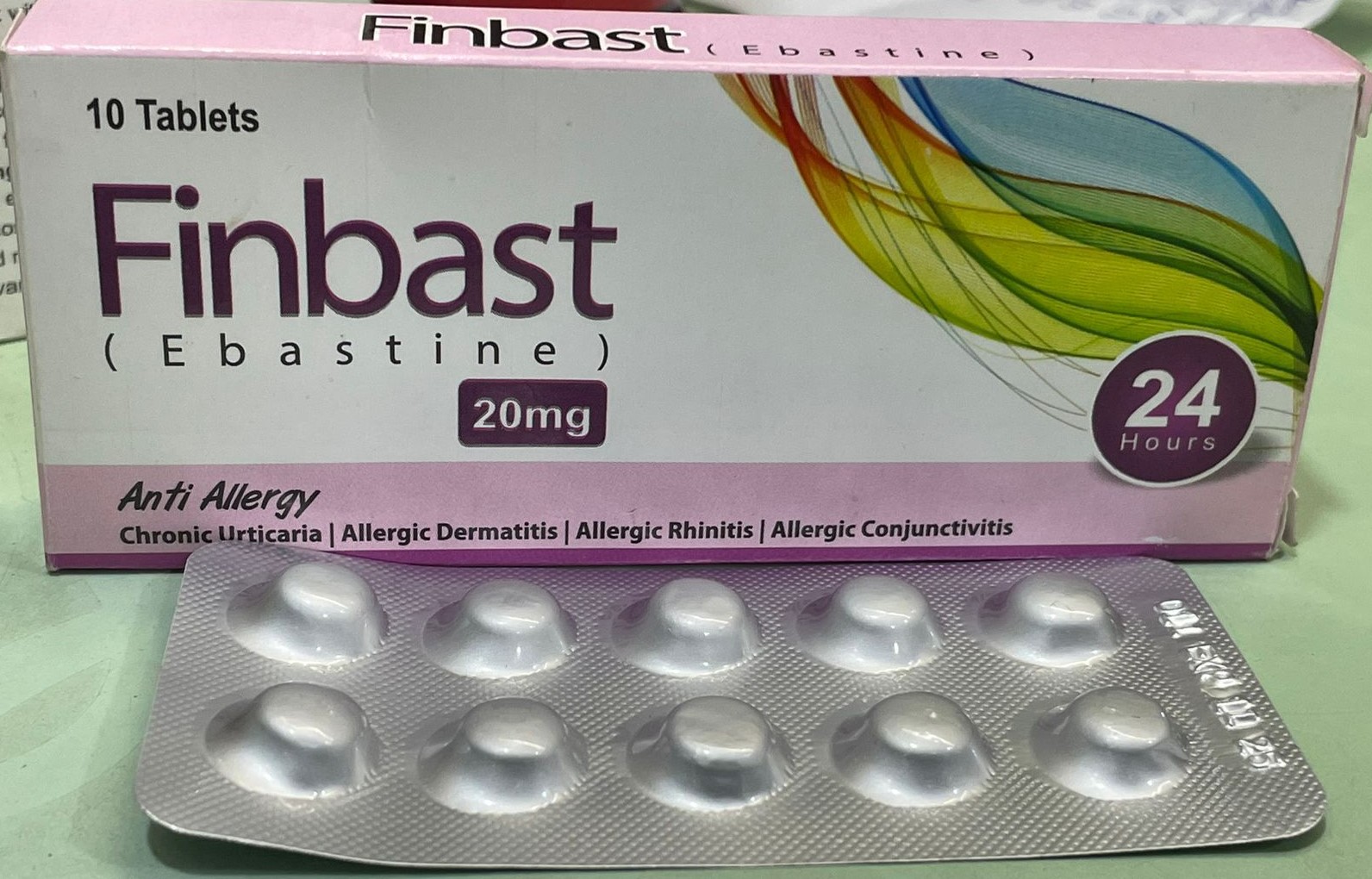 Finbast 20mg tablet contains the active ingredient Ebastine. Ebastine is a second-generation antihistamine used to relieve symptoms associated with allergic conditions such as hay fever (allergic rhinitis), allergic conjunctivitis, and hives (urticaria). It works by blocking the action of histamine, a substance in the body that causes allergic symptoms.